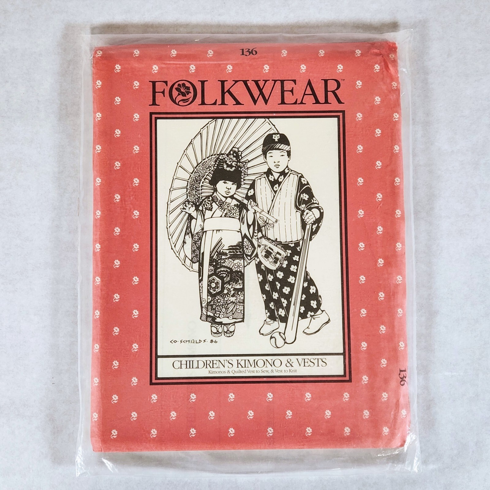 Folkwear Pattern 136 Childrens Kimono Vests Pattern Quilted Knit Size 2 10 Uncut Ebay